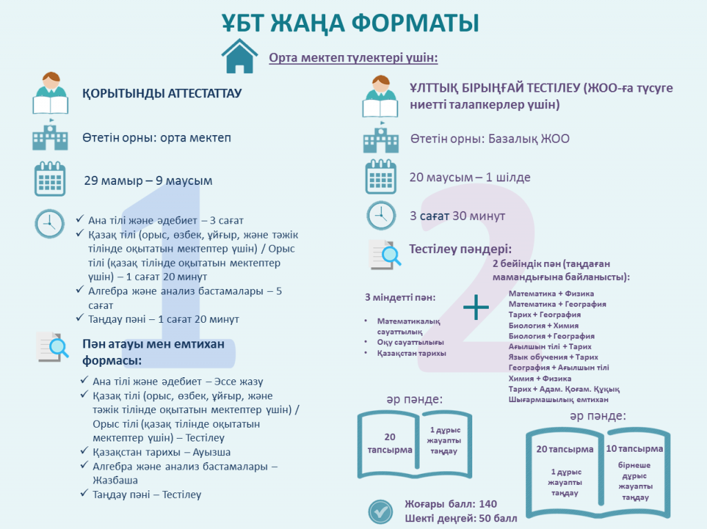 Ұлттық бірыңғай тестілеудің екі кезеңде өтетіндігі туралы толық мәлімет.